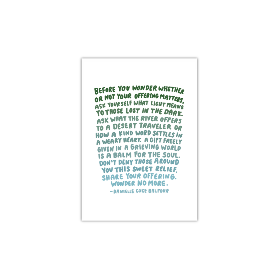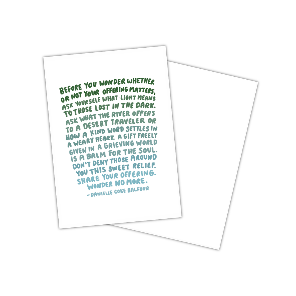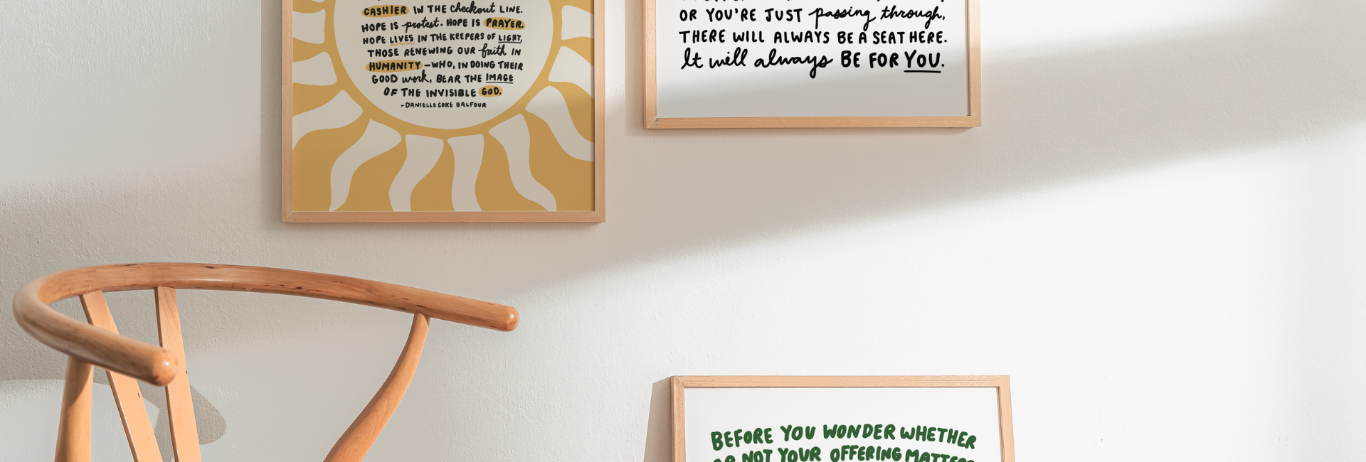 The goal is simple: helping you keep hope on hand when you need it. Whether you're hanging it on your wall or passing it on to comfort a loved one, the Hope on Hand Mail Club is meant to inspire you to delight in your values and remind you that hope is still present all around us, even when it's hard to see.