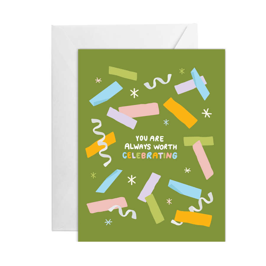 Perfect for celebrations of all types, this greeting card reminds your loved one that they are always worth celebrating.