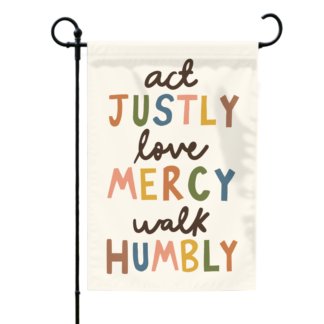 Keep Micah 6:8 close to your heart and in your home with this garden flag! “He has shown you, O mortal, what is good. And what does the Lord require of you? To act justly and to love mercy and to walk humbly with your God.”