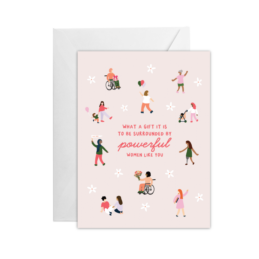 One 4.25 x 5.5 greeting card. Each greeting card comes with a matching white 5.75 x 4.375″ envelope.